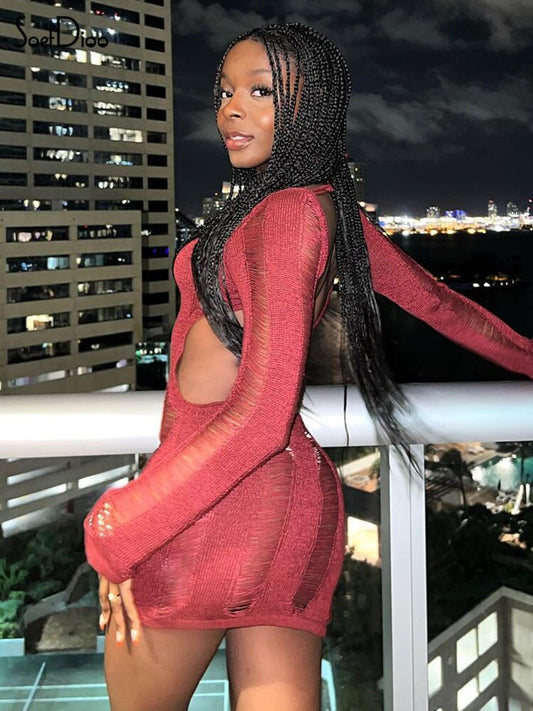 Puloru Sexy Knitted Cutout Short Dress