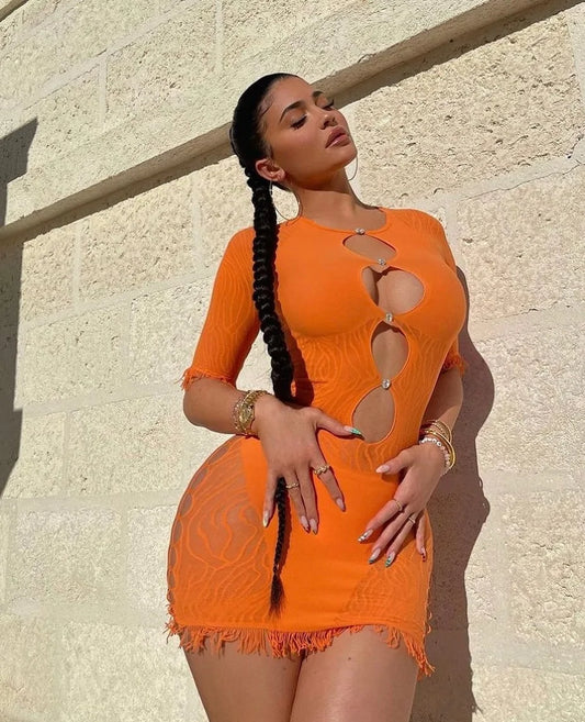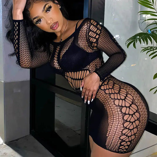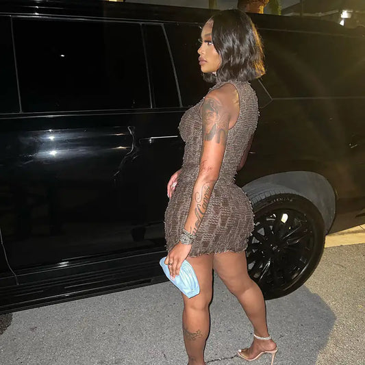 Can't Be Just Friends Low-Cut Mesh Panel Mini Dress