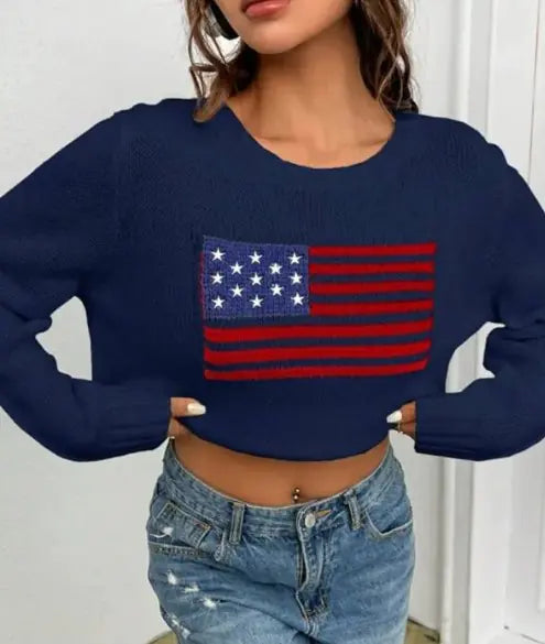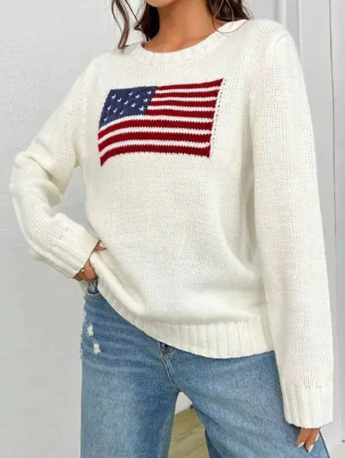 Make a statement with our Women’s Loose Round Neck Flag Sweater—where comfort meets chic style!